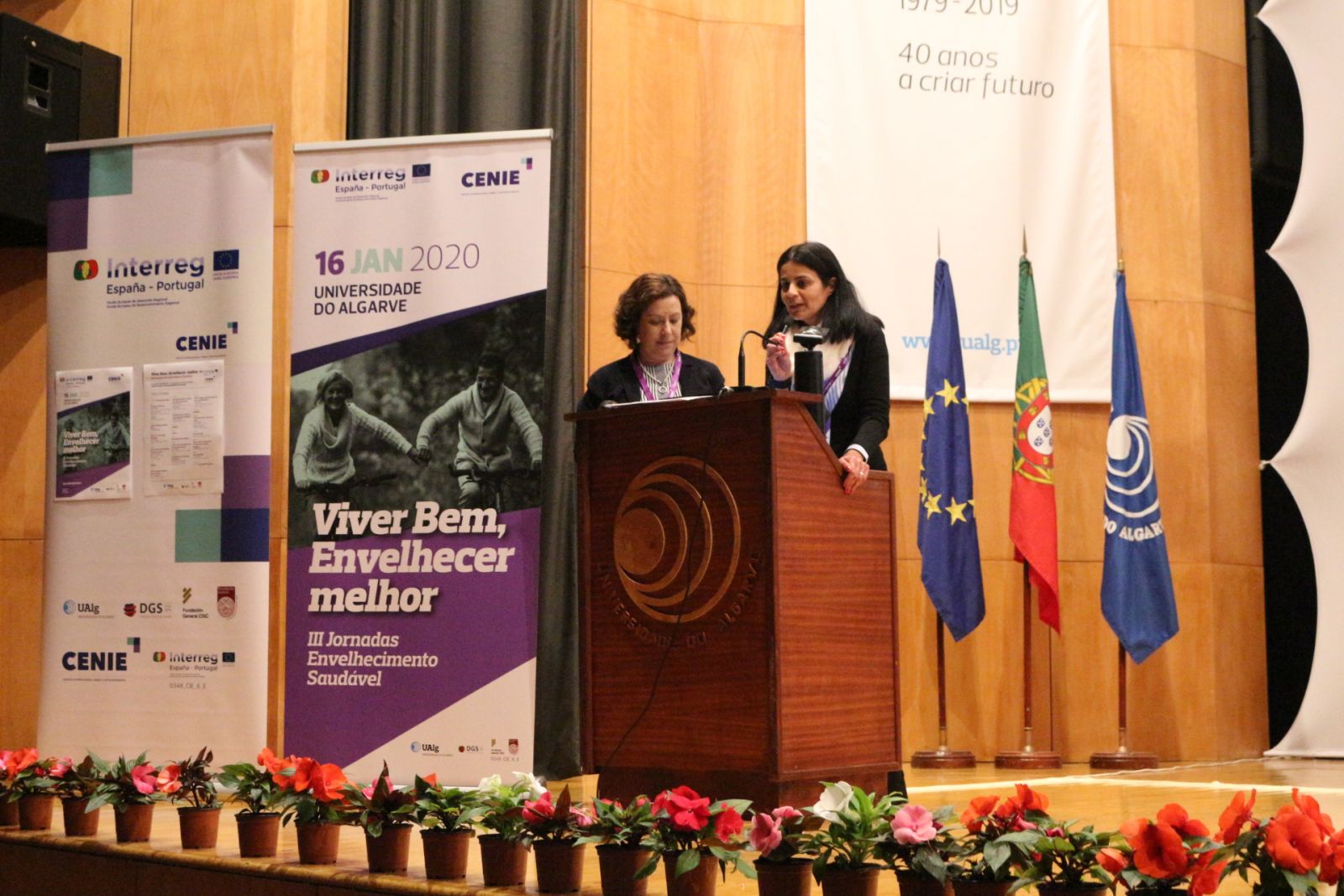 Within the framework of the CENIE Project (0348_CIE_6_E) - International Centre on Ageing, which is part of the INTERREG V A SPAIN-PORTUGAL (POCTEP) 2014-2020 cooperation programme, the III Healthy Ageing Conference "Living well, ageing better" was held on 16 January in the Grand Auditorium of the Gambelas Campus of the University of the Algarve, aimed at the general public, informal carers and technicians in the region.