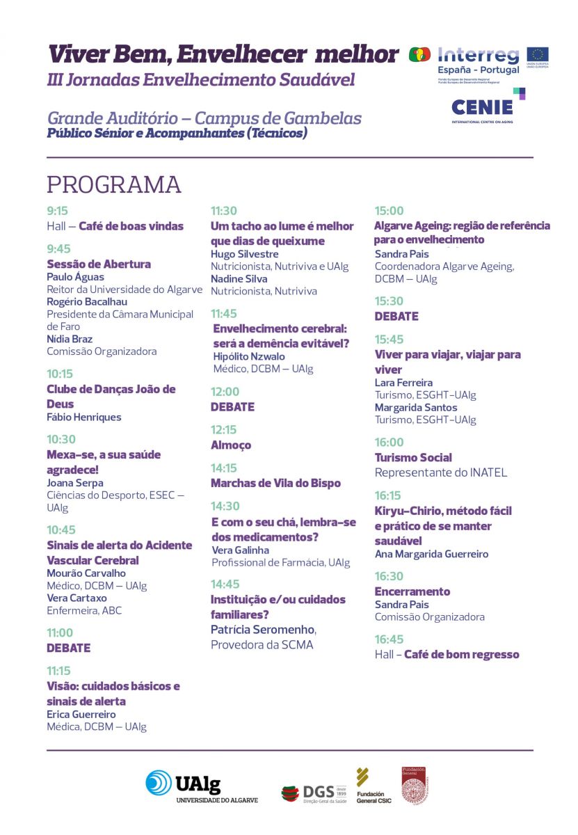 The International Centre on Ageing and as a result of the success of the first and second conferences, which have had more than 500 participants each, including technicians, leaders, caregivers, users of various institutions and the general public, will hold, on January 16th, the III Conference "Living Well, Ageing Better", which will take place at the Campus of Gambelas of the University of Algarve, in Faro.