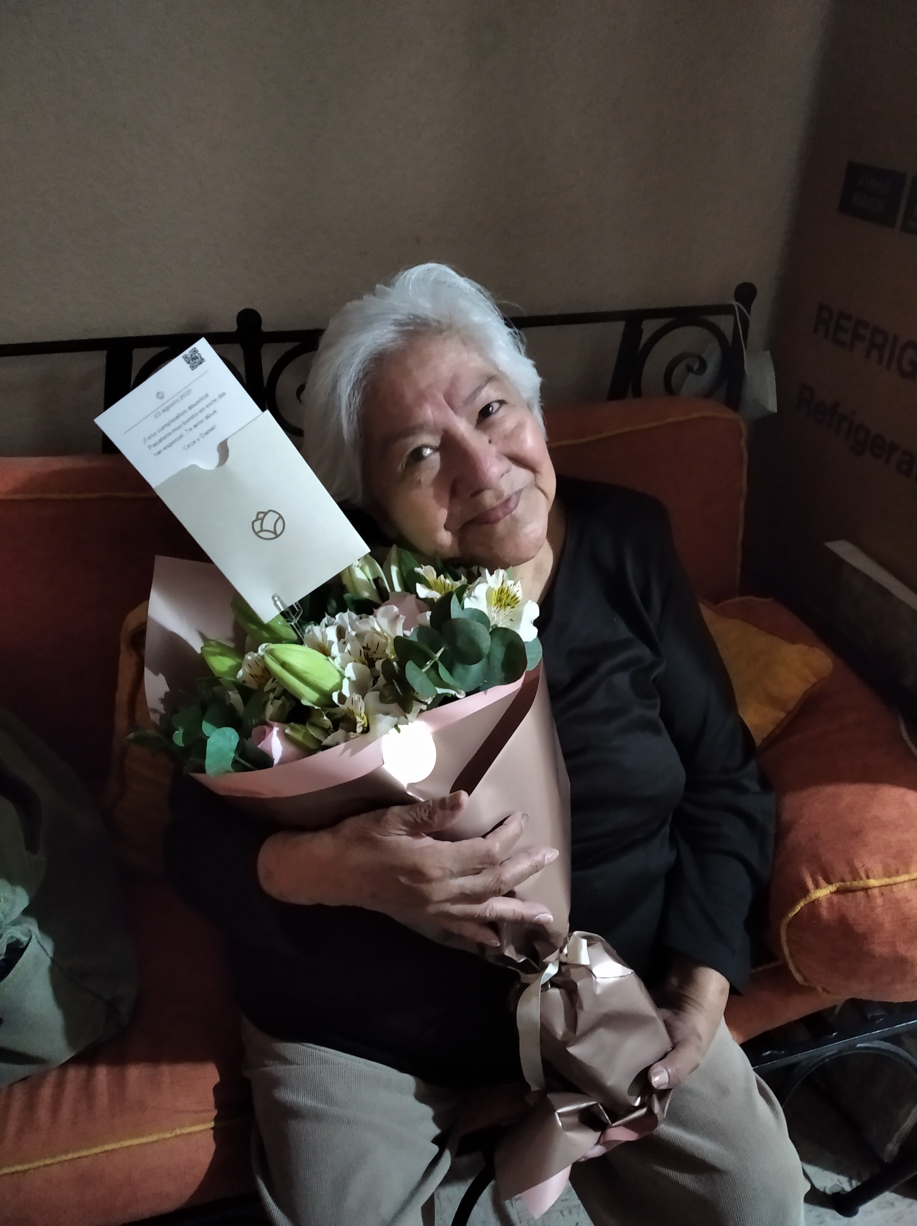 Mi hija le envió flores a su abuela por el día de su cumpleaños y fue una foto para mostrarle a mi hija que si las había recibido. Mi madre tenía mucho que no recibía un ramo de flores y eso la puso muy feliz