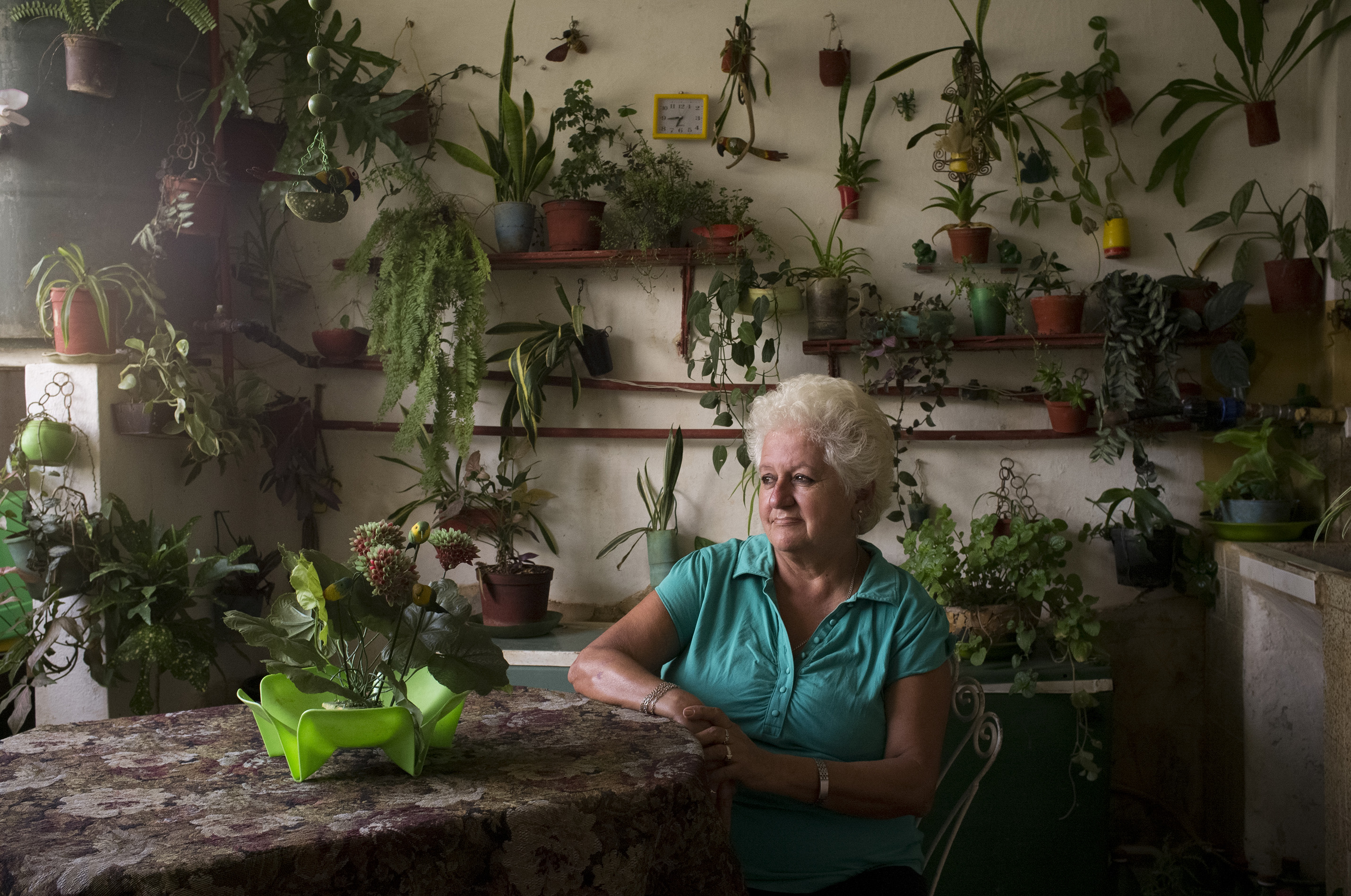 Mujer mayor en Cuba rodeada de plantas