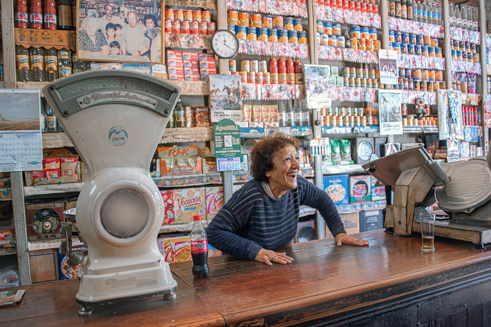 Felicidad al estar atendiendo al publico en el almacen de ramos generales, propiedad de la familia desde las generaciones anteriores