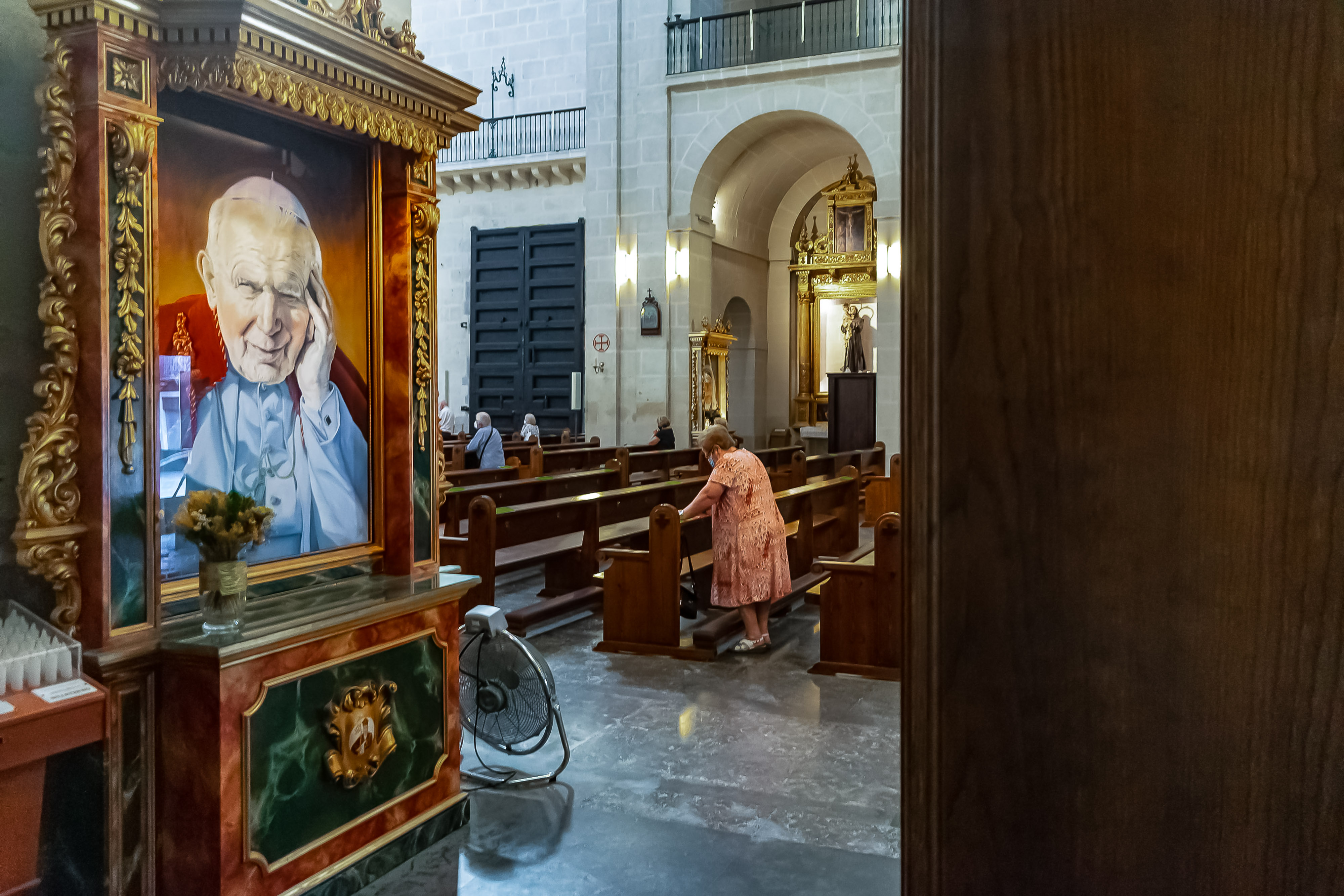 Foto realizada en la Concatedral de Alicante, en esos momnentos por la mañana se estaba realizando la homilia matinal, para los creyentes que son muchas de las personas mayores en su cita diaria a misa, la fe en Dios es el motor de sus vidas.
