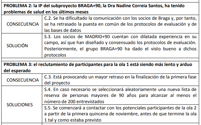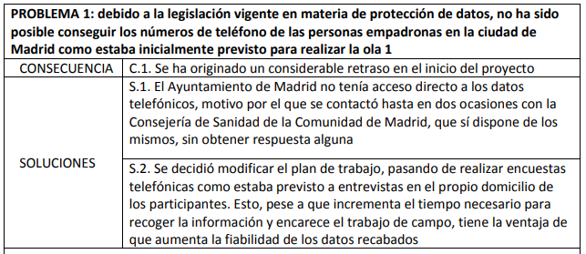 During the execution of the work plan initially planned, a series of incidents occurred to which the research team had to respond in order to meet the objectives of MADRID+90. These incidents, as well as the consequences they have caused and the actions taken to overcome them, are summarised in the following table: