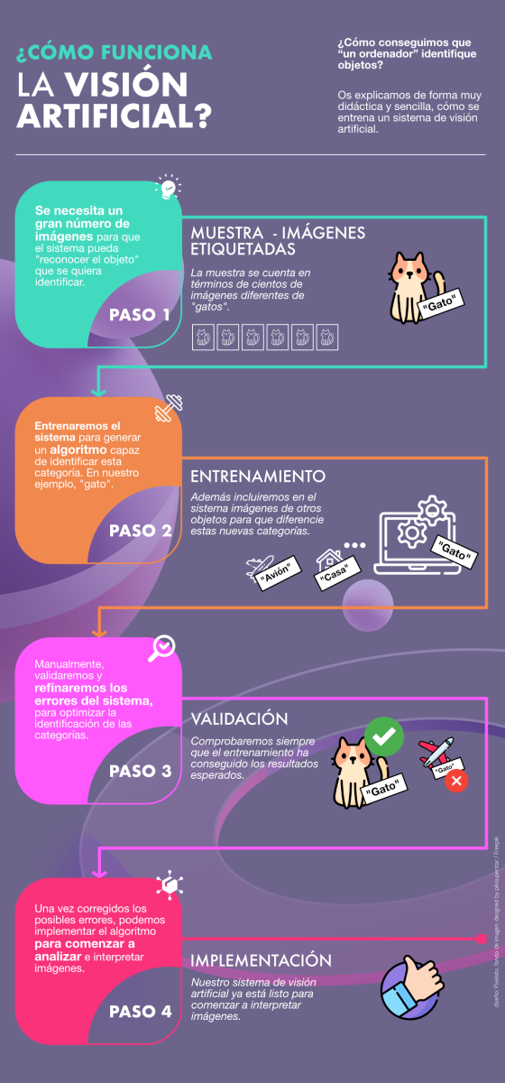 There are several problems of artificial vision, such as classification, detection, or segmentation, and all of them share something in common and that is that for an artificial vision system to be able to recognise objects, it has to be trained before, so how do we get "a computer" to recognise objects? We explain in a very didactic and simple way how an artificial vision system is trained.