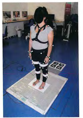 Estos tres equipos (sistema cinemático, plataforma de fuerza, sistema Equimetrix) se utilizaron conjuntamente para validar el CoM y el CoP, un ejemplo de esta configuración experimental se ilustra en la figura 4.