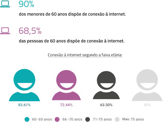 • Mais de 68% dos idosos têm conexão à Internet.