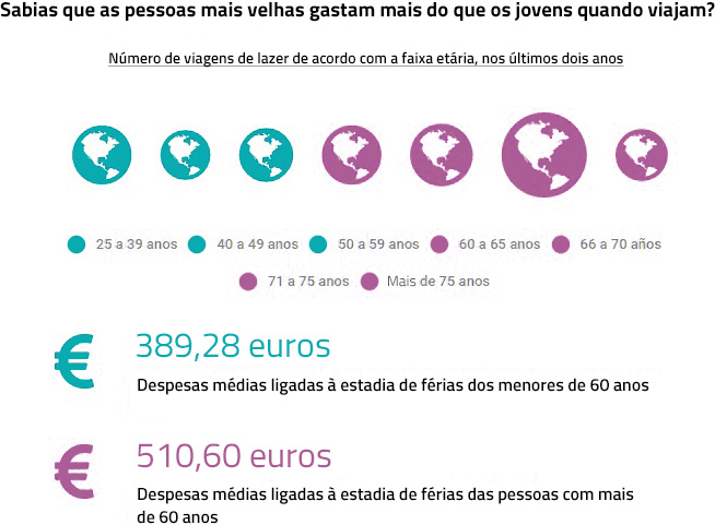 O custo de aluguel do alojamento é o mesmo se vão numa viagem organizada ou se vão por conta própria. No entanto, sim existem diferenças em outras despesas relacionadas com a estadia (refeições, visitas de contratação, ...), uma vez que estas são maiores quando se exercem sozinhas do que quando fazem uma viagem organizada. Portanto, as cadeias hoteleiras e os promotores de destinos turísticos farão bem em manter esse tipo de clientes, devem ser mais rentáveis ​​do que aqueles menores de 60 anos.