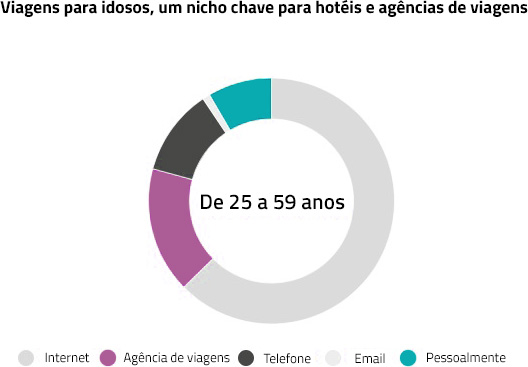 Aqueles com mais de 60 usam em menor grau do que os com menos de 60 sites especializados para a contratação ou informações sobre acomodações, 10,75% em comparação com 33,78%. Este é um fato que pode ser explicado por duas razões; Em primeiro lugar, devido ao menor uso da internet por este grupo e, em segundo lugar, pelo desejo de ter um tratamento pessoal ao procurar, selecionar e contratar alojamento e outros serviços para a sua viagem de lazer ou férias. Esta porcentagem cai significativamente depois dos 71 anos.